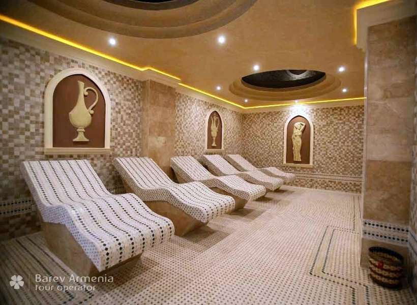 Хаммам лучше подходит тем, кто не может выдерживать 100-120 градусов обычной бани или сауны. Это очень полезно для Вашего организма. Это и ингаляция верхних дыхательных путей, и глубокое очищение кожи, и полная релаксация. Вы будто бы рождаетесь заново. Отдавая дань древнеримским традициям, в Хаммаме Вам предлагаются разные виды массажа с использованием специальных фитосоставов, растворенных в высококачественном оливковом масле. Массаж действует значительно интенсивнее на чистую, разогретую кожу, а ароматические масла производят дополнительный терапевтический эффект.