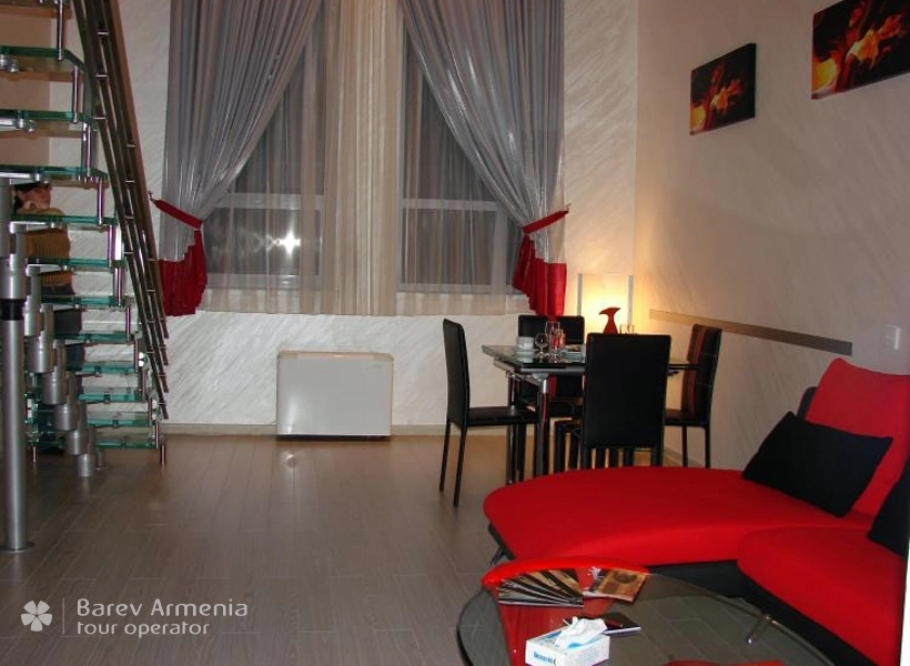 Кондиционирование, прихожая, спальная комната, гостиная, ванная комната, душевая кабина, умывальник, туалет, местные телеканалы, спутниковые телеканалы, телефон, зеркало, стол, рабочий стол, журнальный столик, гардероб, стул, кресло, диван, мини-бар, сейф.