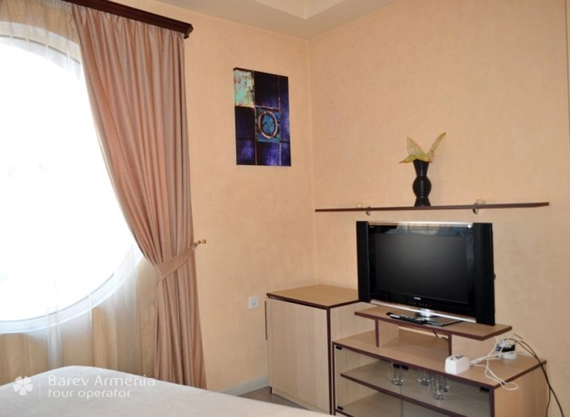 Кондиционирование, спальная комната, ванная комната, душевая кабина, умывальник, туалет, местные телеканалы, спутниковые телеканалы, телефон, зеркало, рабочий стол, гардероб, стул, мини-бар, сейф.