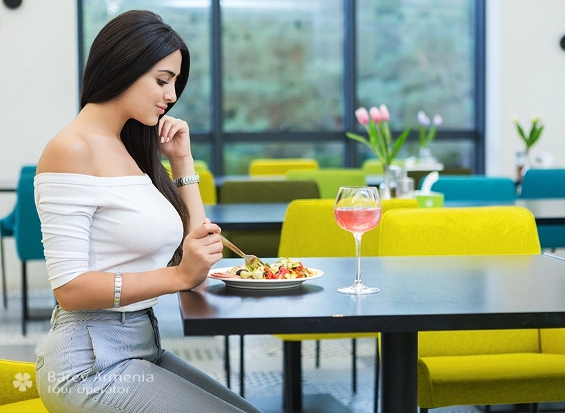 Ресторан санатория предлагает Вам трёхразовое питание по системе «шведский стол». Всегда на столе огромный ассортимент закусок, фруктов, блюд национальной и европейских кухонь. Вы сможете выбрать себе питание по своему вкусу или рекомендациям врача — в ресторане предусмотрено также диетическое питание.