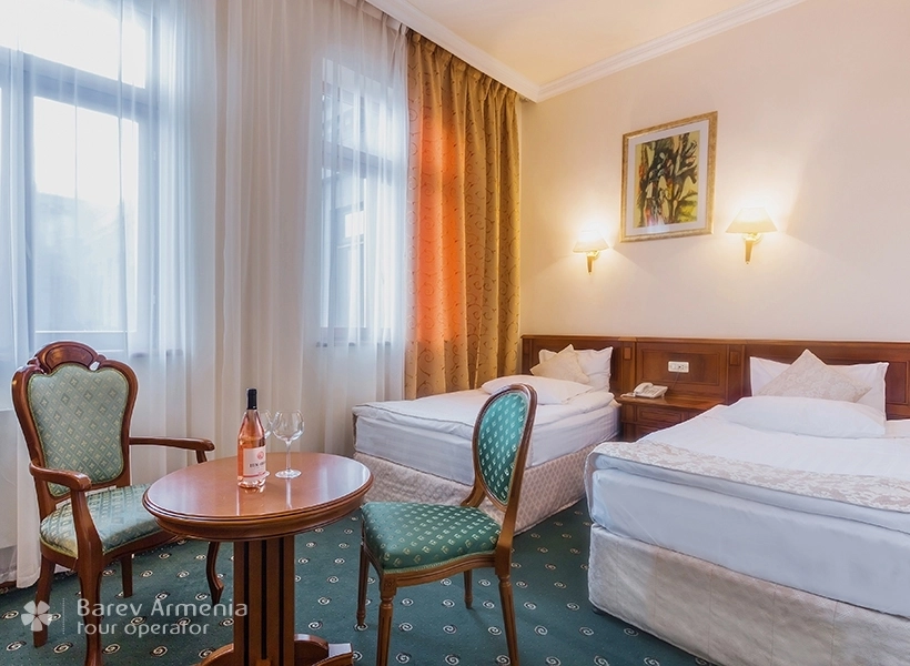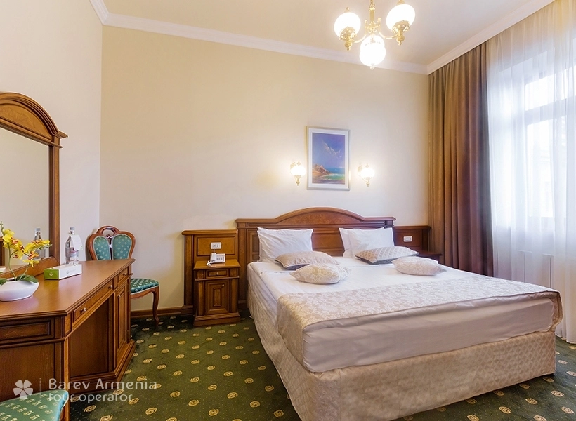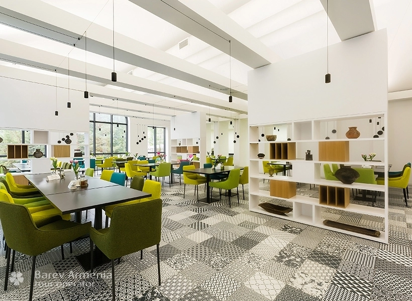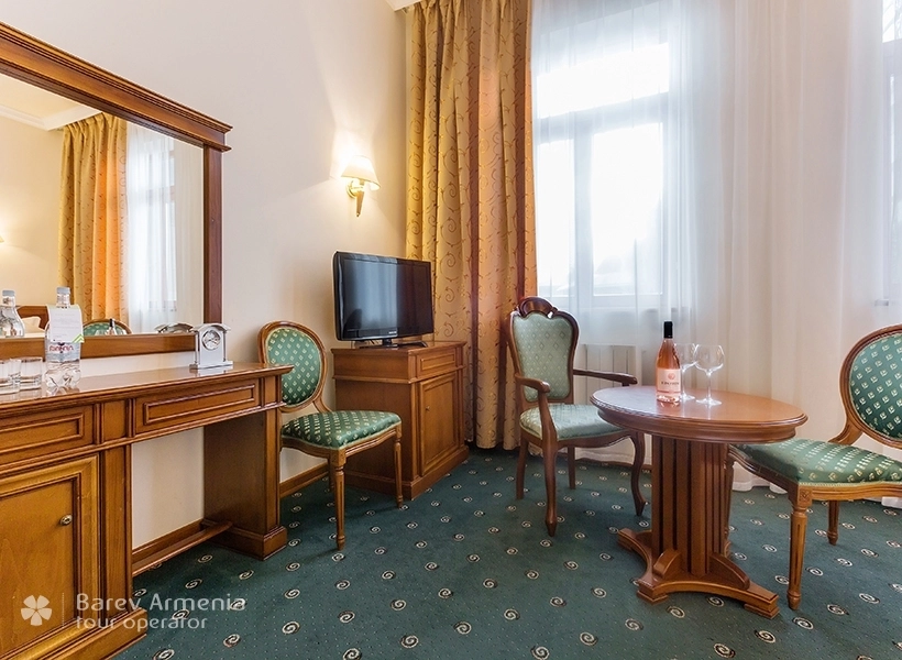 Во время кольцевого тура по Армении мы решили остановиться в "Джермук Армении" на два дня, но мы и представить себе не могли, что этот санаторий окажется таким красивым и многофункциональным. Красивые номер с просторной ванной комнатой на первом этаже, спокойная атмосфера, теплая восстанавливающая погода, красивые мраморные залы, в которых виртуоз удивит гостей своим прекрасным исполнением на пианино. Обогреваемый бассейн, спортзал, сауна, грязевые ванны, массажи, общая медицинская диагностика, включая кардиограмму, анализ крови... Все включено в цену и, конечно же, по желанию гостя. И все это всего за 2800 руб на персону за сутки. За пределами красивого парка, посреди 200-метровой аллеи, вы можете прогуляться и отведать оздоровительных вод. .. Спокойствие, умиротворение… невероятно внимательное и доброжелательное отношение со стороны англоязычного персонала. Wi-Fi стоит 80 руб в день. Единственный недостаток: кухня не очень разнообразна, но пища здоровая… Санаторий “Джермук Армения” надолго останется в нашей памяти.