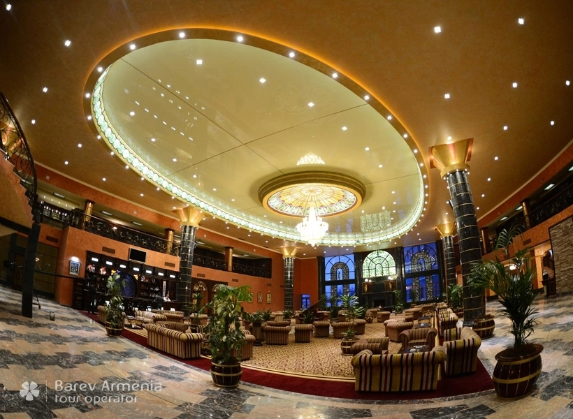 Golden Palace Resort and Spa по праву гордится своим самым большим в регионе лобби. Помимо гигантской площади в 1650м2 , лобби примечательно самым большим парадным камином, великолепной коллонадой и шикарной смотровой площадкой. С обилием зелени вокруг и комфортабельными креслами, лобби-бар предлагает поистине королевский уровень обслуживания для своих гостей. Незабываемые ночи живой музыки и прородное тепло камина подарят вам самые приятные впечатления о пребывании здесь. Как приятная деталь, прилагается свободный доступ в интернет по всей территории лобби.