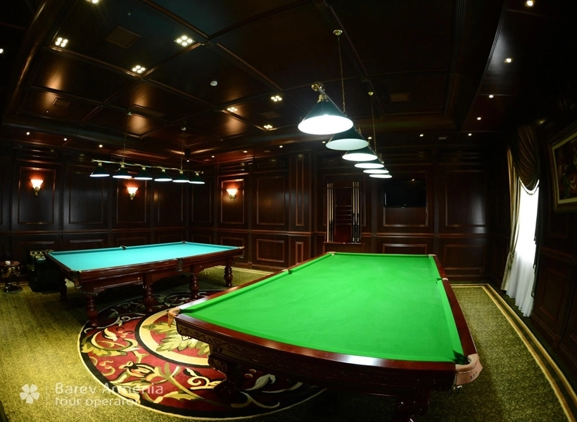 Круглосуточно предлагает свои услуги бильярдная комната. В распоряжении отдыхающих многообразие столов для самых разных видов бильярда: от американского пула до классического русского бильярда. Не отвлекаясь от игры вы сможете попробовать так же любые напитки и скрасить досуг приятной музыкой.
