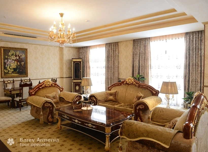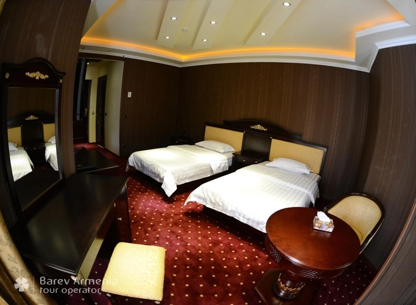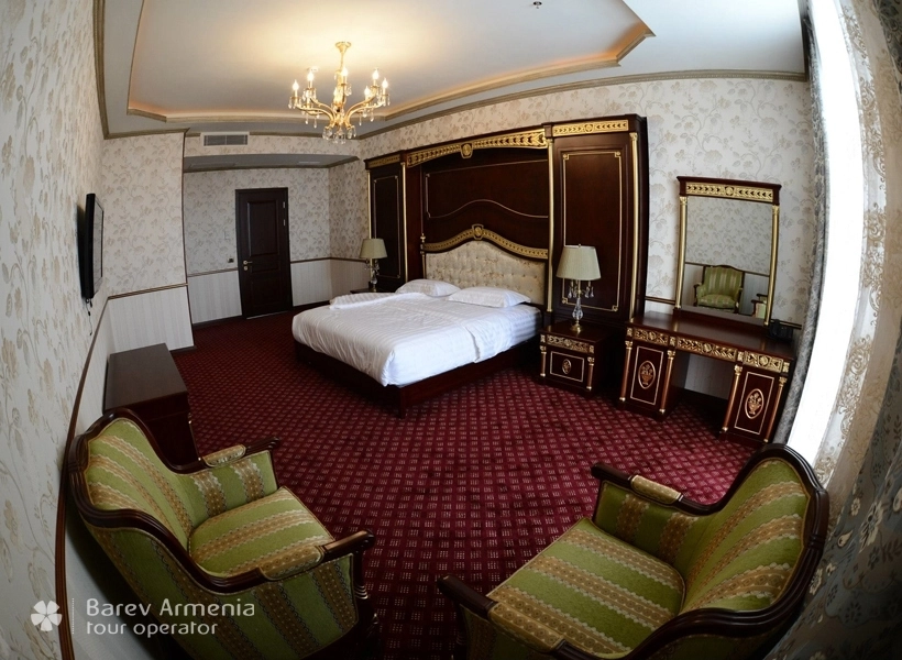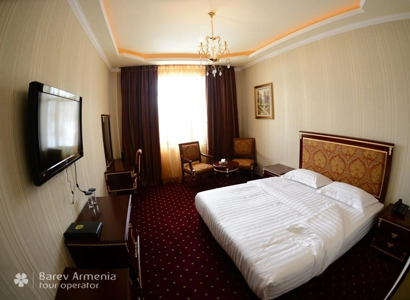Стильные и уникальные интерьеры с фантастическом видом на горную Армению. Новые номера Standard Deluxe оборудованы двуспальными кроватями с шикарным бельем, мебелью ручной работы, рабочим столом с широкополосным беспроводным интернетом.