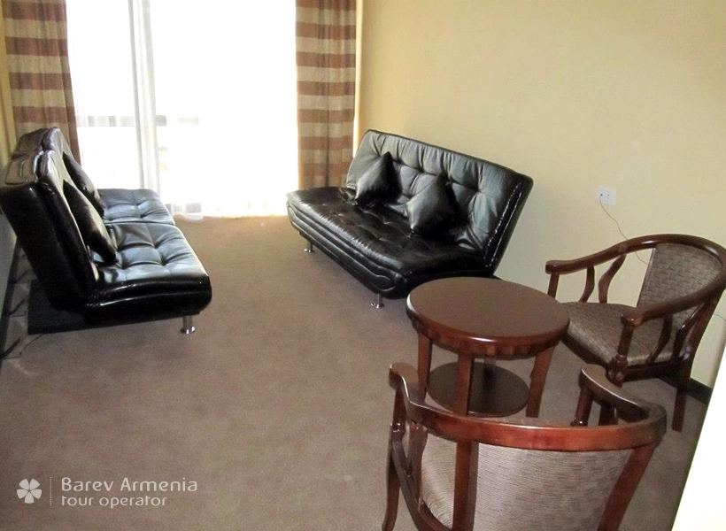 В номере есть кондиционер с индивидуальной системой регулирования температуры, шкафы, лампы, столы, стулья, телефон, телевизор с местными и спутниковыми каналами, зеркало, мини-бар, ванная комната, туалетные принадлежности, фен, халат.