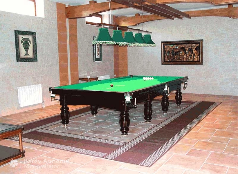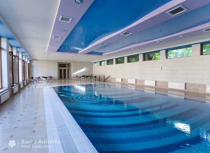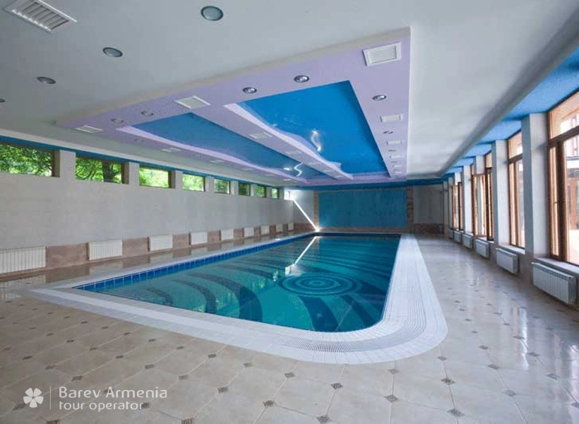 В гостинице имеется крытый бассейн рзмером 18х6 метров, глубина от 100 до 160 сантиметров. Вода в бассейне постоянно фильтруется при помощи фильтрующих систем многократной очистки. На территории бассейна постоянно находится спасатель-профессионал. Бассейн оборудован двумя отдельными раздевалками, шкафами для переодевания, душевыми. На территории бассейна установлены удобные кожанные кресла и стулья.