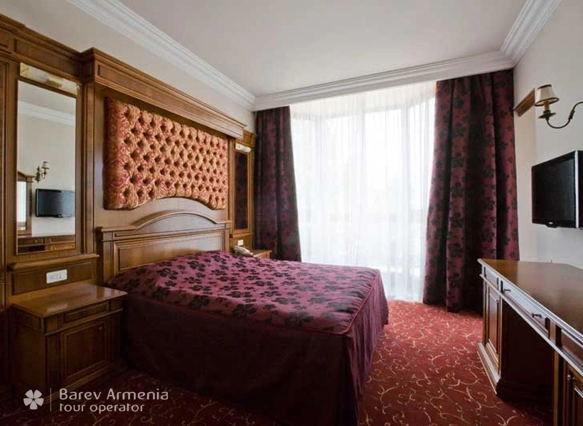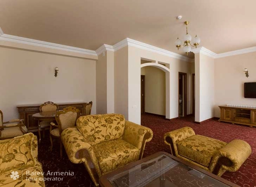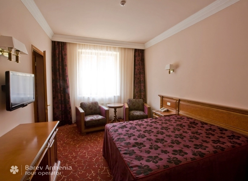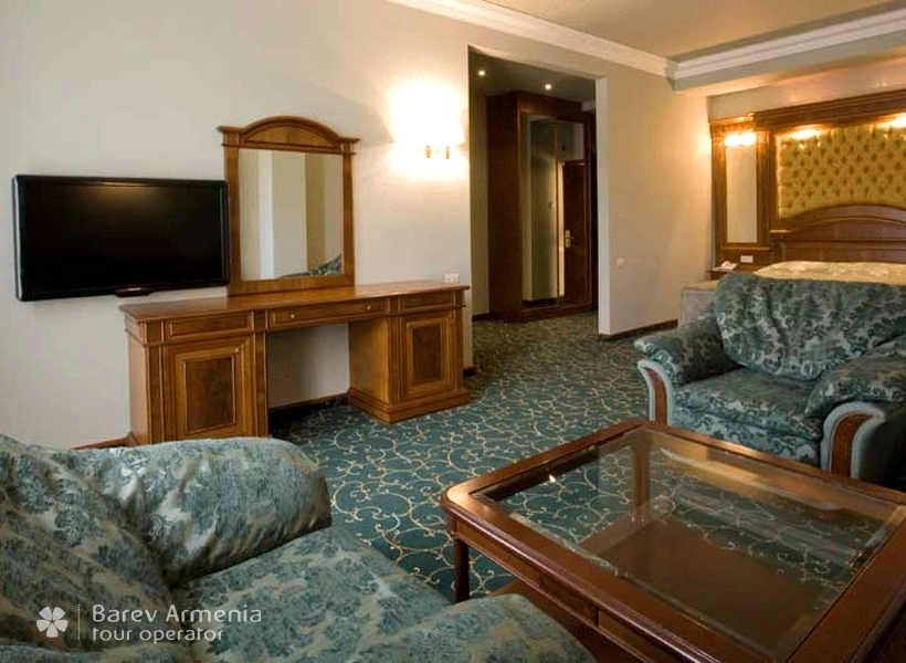 Данный просторный номер предусморен для двух персон, оборудован двуспальной кроватью, в номере также имеется мягкий холл с журнальным столом. В номере имеется трюмо, бельевой шкаф, несгораемый сейф, спутниковое телевидение, бесплатный Wi-Fi интернет, внутренний телефон. Все номера оборудованы электронными дверями (система электронная карта-ключ) Также в номере имеется мини-бар. В просторных ванных комнатах имеются душевые кабины с круглосуточной горячей и холодной водой, одноразовыми туалетными и ванными принадлежностями, также в данном номере предоставляются халаты.