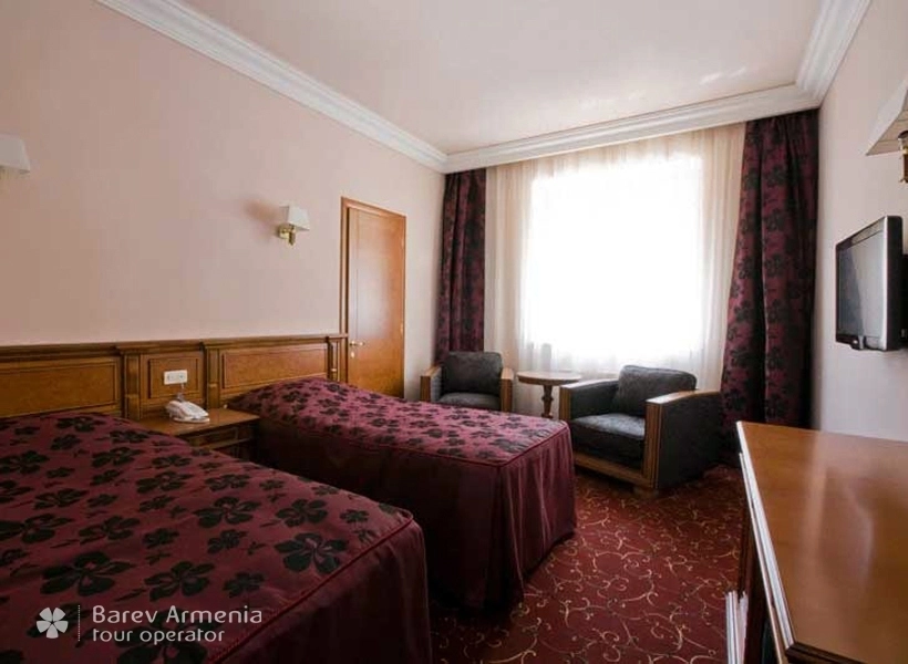 Двухместный номер с отдельными кроватями, некоторые номера из категорий Сингл/Дабл и Твин соединены смежными дверями, что дает прекрасную возможность для семейного отдыха с детьми. В номере имеется два мягких кресла, журнальный стол, трюмо, бельевой шкаф, несгораемый сейф, спутниковое телевидение, бесплатный Wi-Fi интернет, внутренний телефон. Все номера оборудованы электронными дверями (система электронная карта-ключ) Также в номере имеется мини-бар. В ванных комнатах имеются душевые кабины с круглосуточной горячей и холодной водой, одноразовыми туалетными и ванными принадлежностями.
