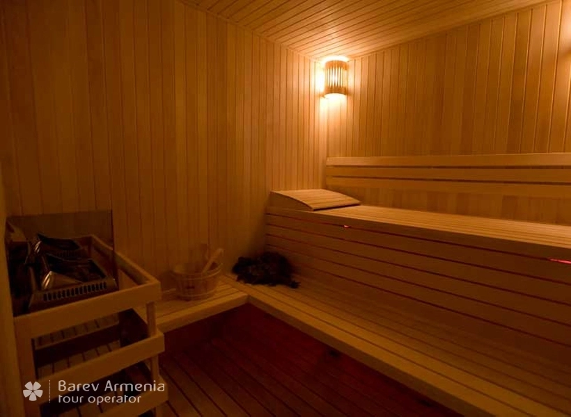 В гостинице имеются два типа сауна – финская и турецкая. Каждая из них оснащена отдельным бассейном с постоянно фильтруемой водой, душевая комната, предбанник и кожаный мягкий холл. Сауны предназначены для 4-х человек. Имеются халаты и другие необходимые банные принадлежности. При необходимости выдаются специальные ароматизаторы.