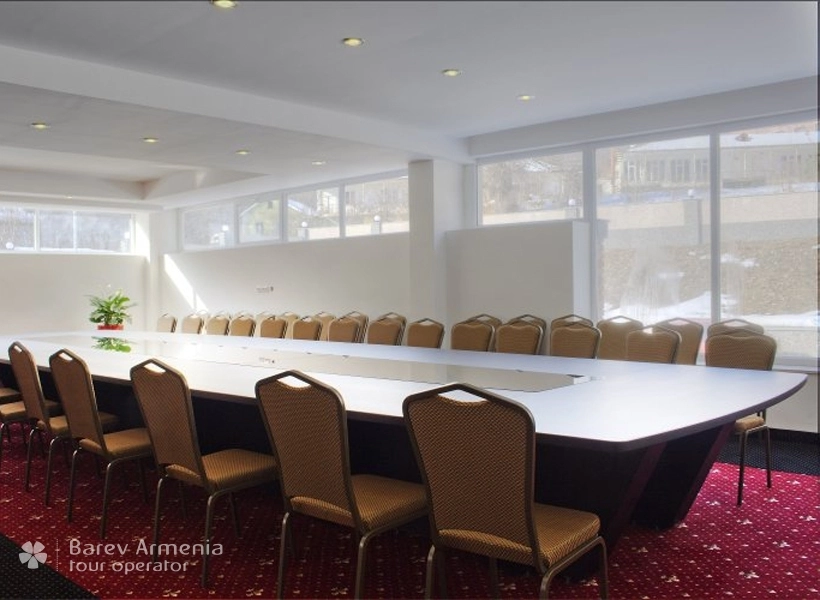 Конференц-холл гостиничного комплекса «Цахкаовит» прекрасно подойдет для организации и проведения самых различных семинаров, форумов, тренингов, научных конференций и деловых встреч. Конференц- зал, рассчитанный на 60-70 человек, оборудован всей необходимой аппаратурой и может быть смоделирован после осуществления заказа сообразно предпочтениям и требованиям заказчика. А приветливый и высококвалифицированный персонал гостиницы делает все необходимое для удачного проведения вашего мероприятия.