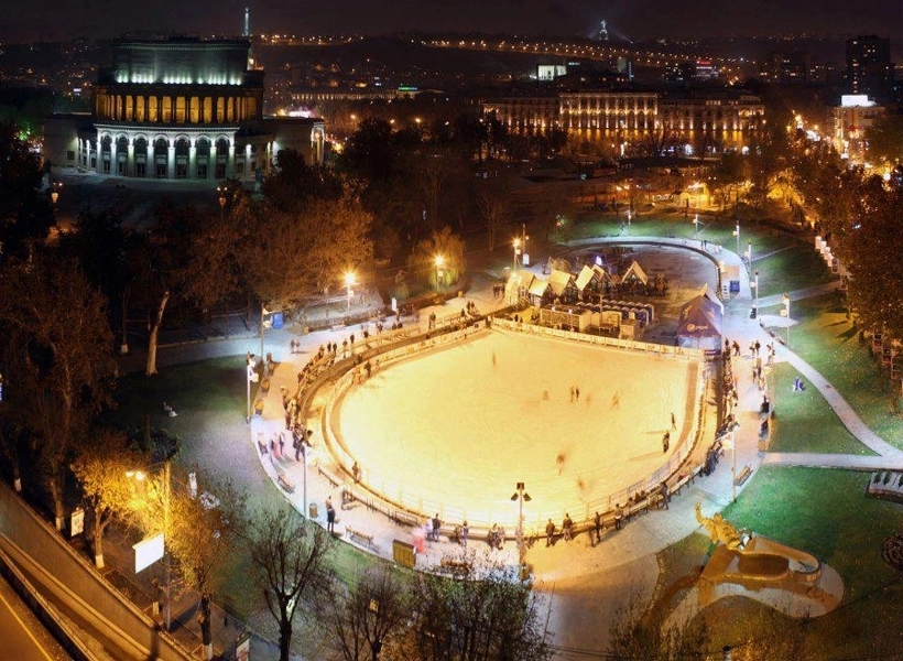 Мы сразу же пошли гулять по Еревану или розовому городу, т.к большинство зданий сделаны из туфа, который в стране и добывается, хорошо держит тепло и имеет много разных оттенков, но больше розового. Мы ходили по центральным улицам, посетили стеллу геноцида армян, которая просто утопала в цветах. Прошло уже два дня с годовщины, но люди семьями приходили, чтобы почтить память тех ужасных событий. Мы были в самом оперном театре, симпатичный дедушка, а позже выяснилось, что это Директор театра любезно предложил экскурсию по нему и мы побывали почти на всех этажах театра, на сцене, в зале, в лифтах для провоза декораций, для меня это была безпричинная милость Свыше, учитывая как я люблю оперу, балет и театр! Уже после, наш гид предложил поучаствовать в митинге и мы согласились. Все было так мирно, безопасно и спокойно. Армяне были такие дружные, такие радостные, такие сплоченные. Я просто с восхищением наблюдала за ними.